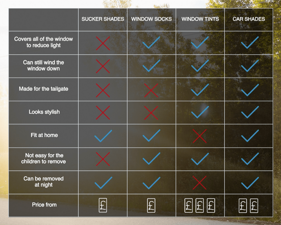 By preventing direct sunlight from getting into the car, the interior will remain cooler and more comfortable, making those hot summer holiday trips much easier! With the lower interior temperature due to the rear windscreen sun shade, everyone can enjoy the drive, even on longer journeys. Also, it will save me from having to run the air conditioning as hard when it’s warm outside, adding to the efficiency of the vehicle. With car sun blinds, my pets can come along and enjoy the experience without overheating too.